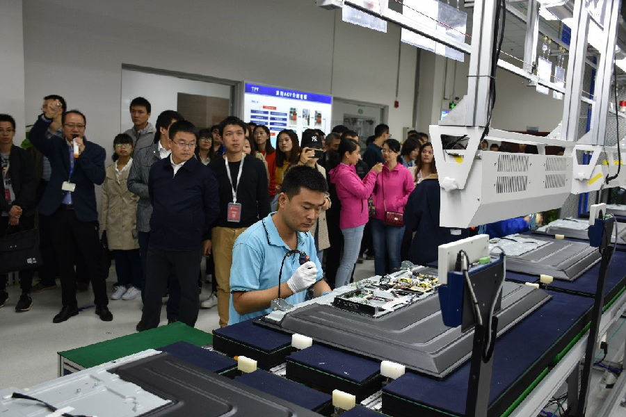 The practice division visits the 8.6 generation of LCD panel production line at TPV Technology Limited (Shot by Wang Zhuchi)