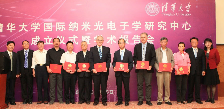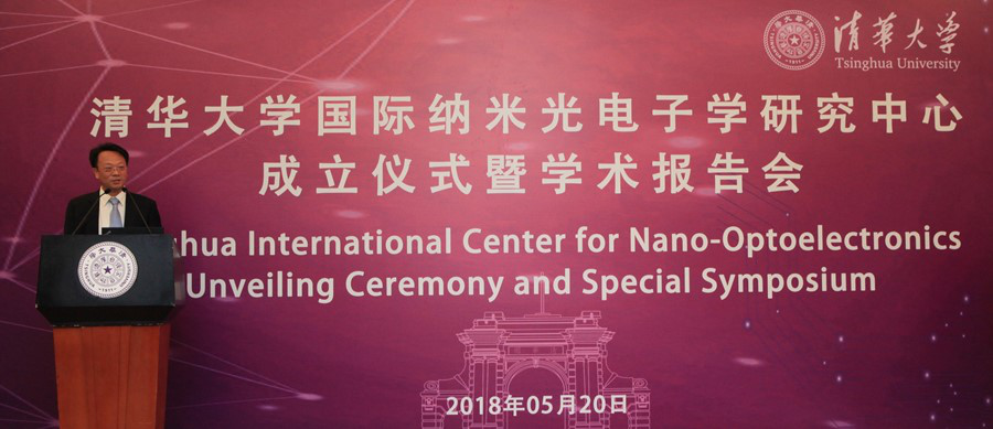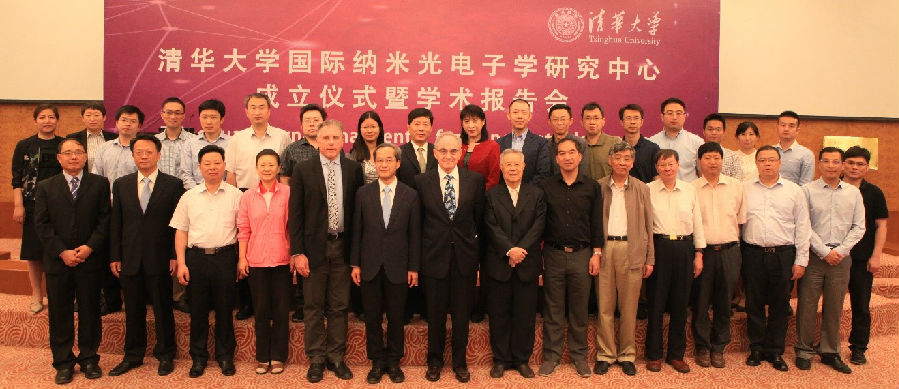 On the Morning of May 20, Tsinghua International Center for Nano-optoelectronics Unveiling Ceremony and Special Symposium kicked off in Tsinghua University. Over 100 people, including Wang Xiqin, Vice President of Tsinghua University, Zhang Guanglian, Deputy Director of Beijing Municipal Science & Technology Commission, Liu Zhenjiang, Director of China-Singapore Tianjin Eco-City Science and Technology Bureau, and members of the Academic Committee of the Center: Academician Zhou Bingkun (Tsinghua University), Academician Zhu Shining (Nanjing University), Academician Zhu Shiyao (Zhejiang University), Academician Li Shushen (Chinese Academy of Sciences), Academician Gu Ying (Chinese PLA General Hosptial), Academician Gong Qihuang (Peking University), and members of the International Advisory Committee of the Center: Academician Yablonovitch (Berkeley), Academician Atwater (California Institute of Technology), Academician Arakawa (University of Tokyo), as well as guests from Beijing Municipal Science & Technology Commission, China-Singapore Tianjin Eco-City, Office of Scientific R&D, Tsinghua University, Department of Electronic Engineering, and Department of Physics, attended the ceremony to jointly witness this important moment.
