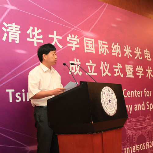 Deputy Director Zhang Guanglian congratulated the establishment of the center on behalf of Beijing Municipal Science & Technology Commission. He pointed out in his speech that the next 5-10 years are a critical period for the large-scale, systematic and innovative research on nano-optoelectronics. He hoped that the center can grasp this important opportunity to vigorously promote the cross-integration of nano-optoelectronics and other disciplines, promote the rapid development of the optoelectronics field in China and show Beijing's demonstrative role in national strategic development of the science and technology industry. He sincerely thanked Tsinghua University for its deep participation and vigorous support of Beijing's construction of national science and technology innovation center. And he also said that in the future, Beijing will definitely continue to serve the innovation work of Tsinghua University and the center as always.