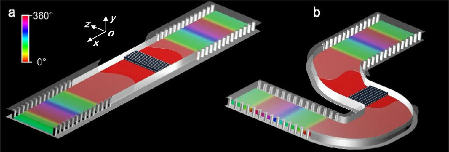Conceptual graph of the substrate-integrated photonic doping: (a) Linear structure, (b) Bending structure