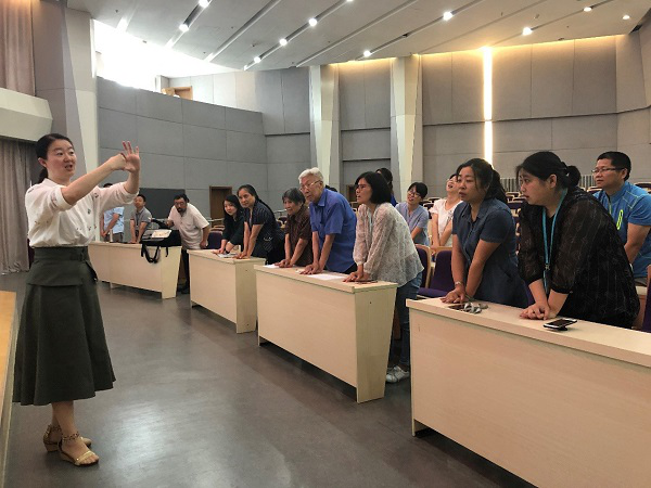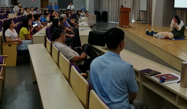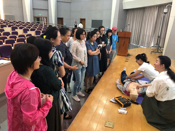 After the lecture, Doctor Wang instructed everyone present to do a complete CPR drill and answered questions that teachers concerned.
