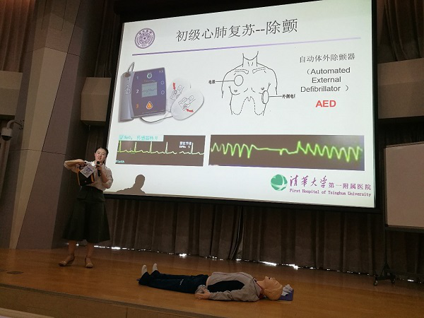 On the afternoon of June 20, 2019, the Sub-labor Union of the Department of Electronic Engineering held a training seminar on "Hope of Life"-Primary CPR in the lecture hall on the third floor of the Rohm Building. At the seminar, Doctor Wang Jing from the Heart Center of the First Hospital of Tsinghua University was invited to explain the basic knowledge and rescue methods of CPR. Main contents of the seminar include: Methods on judging sudden cardiac death and primary CPR. Methods of primary CPR include: Judge the cardiac arrest, call the emergency system, start CPR as soon as possible, and use the defibrillator quickly. Doctor Wang also used the model of human body to instruct teachers in additional practice. Doctor Wang told everyone that early judging and using the correct CPR method can give others hope for living at the last minute. More than 30 faculty members and property staff from the Department of Electronic Engineering participated in the training.