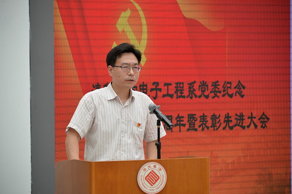 On June 28, 2019, the Department of Electronic Engineering, Tsinghua University held a meeting to commemorate the 98th anniversary of the founding of the Communist Party of China and commend the advanced in the multifunctional hall on the 11th floor of the Rohm Building. The meeting was chaired by Wang Yu, Deputy Party Committee Secretary of the Department of Electronic Engineering. First, Huang Yidong, Head of the Department of Electronic Engineering, announced the list of commended advanced party organizations (party branches), outstanding party members, outstanding party building and ideological workers, and outstanding and ideological and political workers (party branch secretaries). The members of the Party Committee of the Department of Electronic Engineering presented the prizes to commended personnel. Then all commended outstanding representatives made speeches.