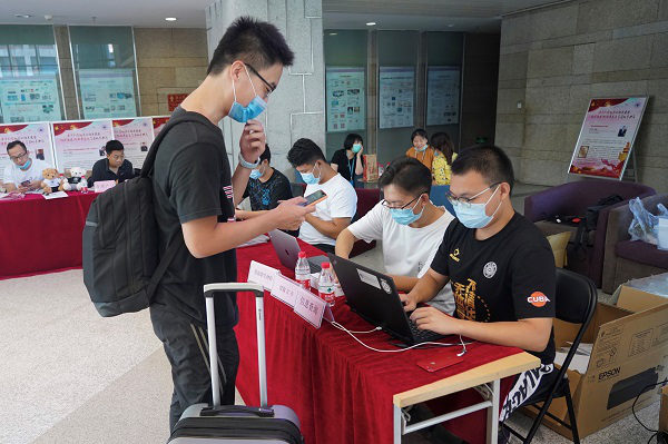 On August 25, the Department of Electronic Engineering welcomed the new postgraduate of Grade 2020. The orientation site was efficient and orderly, the process was clear and the epidemic prevention measures were in place. The teachers from the Teaching Affairs Office of the Department and volunteers completed various admission procedures for the new students. And the students also received epidemic prevention and control supplies and cultural shirts with the characteristics of the Department of Electronic Engineering. Wang Yu, Head of the Department, Jin Depeng, Party Committee Secretary, Li Dongmei, Deputy Party Committee Secretary, and Li Maokun, Leader of the Postgraduate Working Group, came to the site to visit new students and orientation staff, care about the registration and accommodation of new students, and emphasized the implementation of epidemic prevention work. There are a total of 197 new postgraduates in the Department of Electronic Engineering this time, including 105 doctoral students and 92 master students, among which 5 students are from Hong Kong, Macao and Taiwan. The master's degree students with the research area of medical engineering of the Department of Electronic Engineering took a bus to the department hall from Beijing Tsinghua Changgung Hospital to complete the registration.