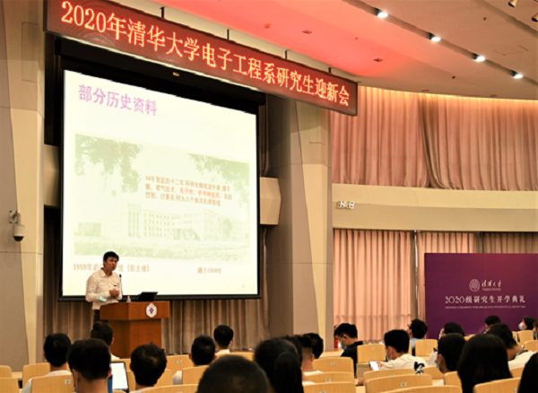 On the afternoon of the 26th, the Grade 2020 Postgraduate Orientation Meeting of the Department of Electronic Engineering was successfully held at the Lecture Hall on the third floor of the Rohm Building. Wang Yu, Head of the Department, Jin Depeng, Party Committee Secretary of the Department, Wu Ji, Deputy Head of the Department, Shen Yuan, Deputy Head of the Department, Li Dongmei, Deputy Party Committee Secretary of the Department, Liu Yimin, Deputy Party Committee Secretary, and teacher representative Sun Nan of the Department of Electronic Engineering jointly attended the meeting, and Lin Xuping and Li Kuan from the Laboratory Management Office attended the meeting upon invitation. The meeting was presided over by Mr. Li Maokun, leader of the Postgraduate Working Group of the Party Committee. Mr. Wang Yu introduced the general situation and discipline development of the Department of Electronic Engineering, and welcomed the arrival of the Grade 2020 postgraduates on behalf of all faculties and students of the Department of Electronic Engineering. Mr. Wang talked about the development history of the Department of Electronic Engineering, from moving to the west in Mianyang to moving back to Beijing, from the masters that established the department to outstanding department alumni; the Department of Electronic Engineering has always shared the destiny with the motherland, and always takes the training of talents of a big country for the motherland and the people, and the grasp of core technologies as its responsibility/ Mr. Wang encouraged students to make full use of the profound background and flourishing development environment of the Department of Electronic Engineering to make original and competitive research results. He required students to study rigorously, have self-disciple, and research with great concentration to seize opportunities and create history!