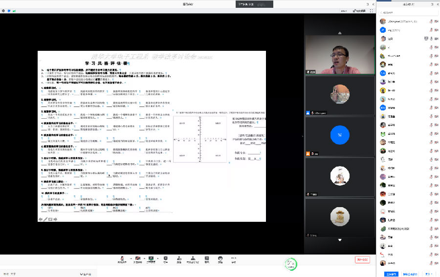 At 19:00 on June 22, 2020, undergraduates in Grade 6 of the Department of Electronic Engineering completed the last class before graduation-"learning style" assessment on the Tencent conference online. The "learning style" assessment for graduating undergraduates is a tradition that the Department of Electronic Engineering has maintained for many years. Its purpose is to help students better understand themselves and take the road ahead. In previous years, it was arranged on the scene of the graduation ceremony of the department. This year, it was changed to be conducted online due to the epidemic and chaired by Shen Yuan, Deputy Head of the Department. The number of participants exceeded 100.