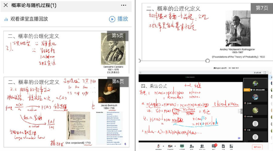 Multiple means are adopted for online teaching. After many tests, the scheme of Yu class + Tencent Conference system was selected, which has achieved unexpected teaching effect. The teaching form has changed from the writing on the blackboard to the writing on the computer screen, which showed the whole process of stochastic thinking to the students. The screen recording is required during the whole process of the Yu class, which is beneficial for the students to look back video and further consolidate knowledge that they learned. Only one student can raise his hand to answer the question at the same time in the on-site teaching mode. However, the students can give their comments concurrently through bullet screen, voting as well as answer multiple-choice questions through Internet. The advantages of online classroom in this respect can cover the shortage of online teaching in terms of low scene feeling to some certain extent. The courseware, playback and after-class assignments were fully copied by the parallel classes of Xinjiang University.