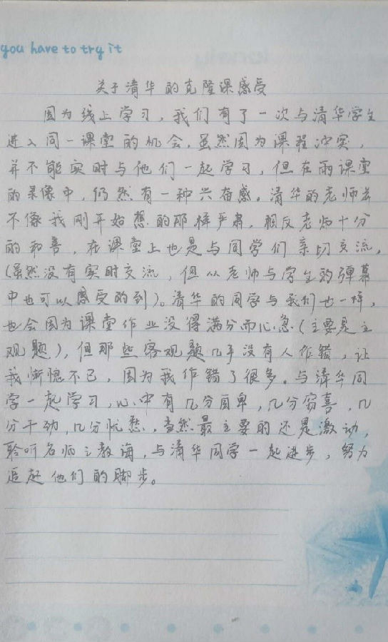 Students from Xinjiang University who took part in the course said that the courses shared by Tsinghua University offer them a good and rare opportunity to learning. They can attend classes with students from Tsinghua University, sense the learning status of excellent students and experience the learning atmosphere of such students. Student Dong Yibo said, "Due to the epidemic, although we still could not return to school, we kept learning through online platforms such as Yu classes, so our learning process is not interrupted due to of the epidemic. We even did not expect that we could have the opportunity to learn the "same course" with the students in Tsinghua University during the epidemic prevention and control period, thus realizing the "Tsinghua University Dream" that I have as a child. Unite as one and overcome the difficulties together. As a student of Xinjiang University, I would like to thank our school for contacting Tsinghua University, which provides us such a good opportunity to learn and exchange, as well as I would like to thank Tsinghua University for providing "online classroom". I believe that I can learn this course well with my own efforts and under the help of teachers. "Student Lu Moqi said that "during the class, teacher Ou explained to us in details and profoundly, making it easier for us to understand. The teacher mainly explained the definition and examples through blackboard writing instead of simply retelling and further explaining the contents of PPT that were prepared in advance before the class. The teacher's handwriting method impressed the students more deeply, which can help the students to solve the problems in a more clear manner. Personally, I think such method is more beneficial for the students to comprehend knowledge. In addition, by explaining different problem-solving methods, it can prevent the students from thinking in a fixed pattern, thus they can form their own ideas for different topics. In my opinion, this is also conducive to the formation of students' innovative divergent thinking. "Due to the time conflict with other courses, student Yuan Wenpin could not attend classes together with other students from Tsinghua University. But he cherished this opportunity and studied through the watching the video. He said, "Because of online learning, we have a chance to take the same course with students of Tsinghua University. Although we cannot learn with them in a real time due to time conflict of curriculum settings, we still feel excited during watching videos through Yu class. The teachers of Tsinghua University are not as serious as I thought before, and on the contrary, they are so kind and polite when communicating with the students in class, ", and he also said that "We should make progress with the students of Tsinghua University and try best to catch up with them. "